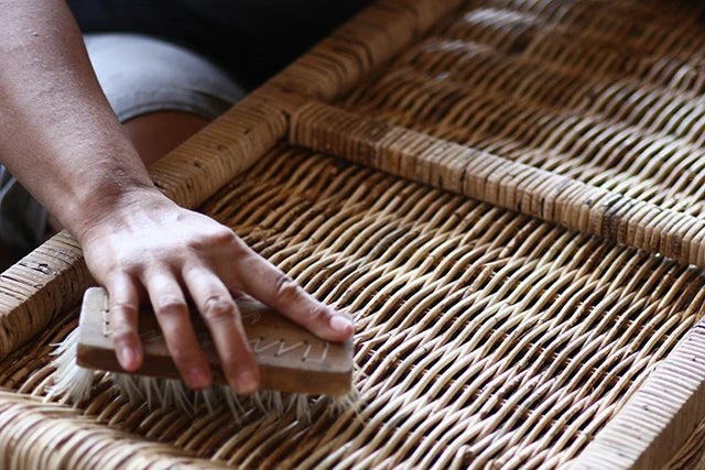 L’enveloppe extérieure est tressée à la main en rotin naturel par des artisans au Vietnam.